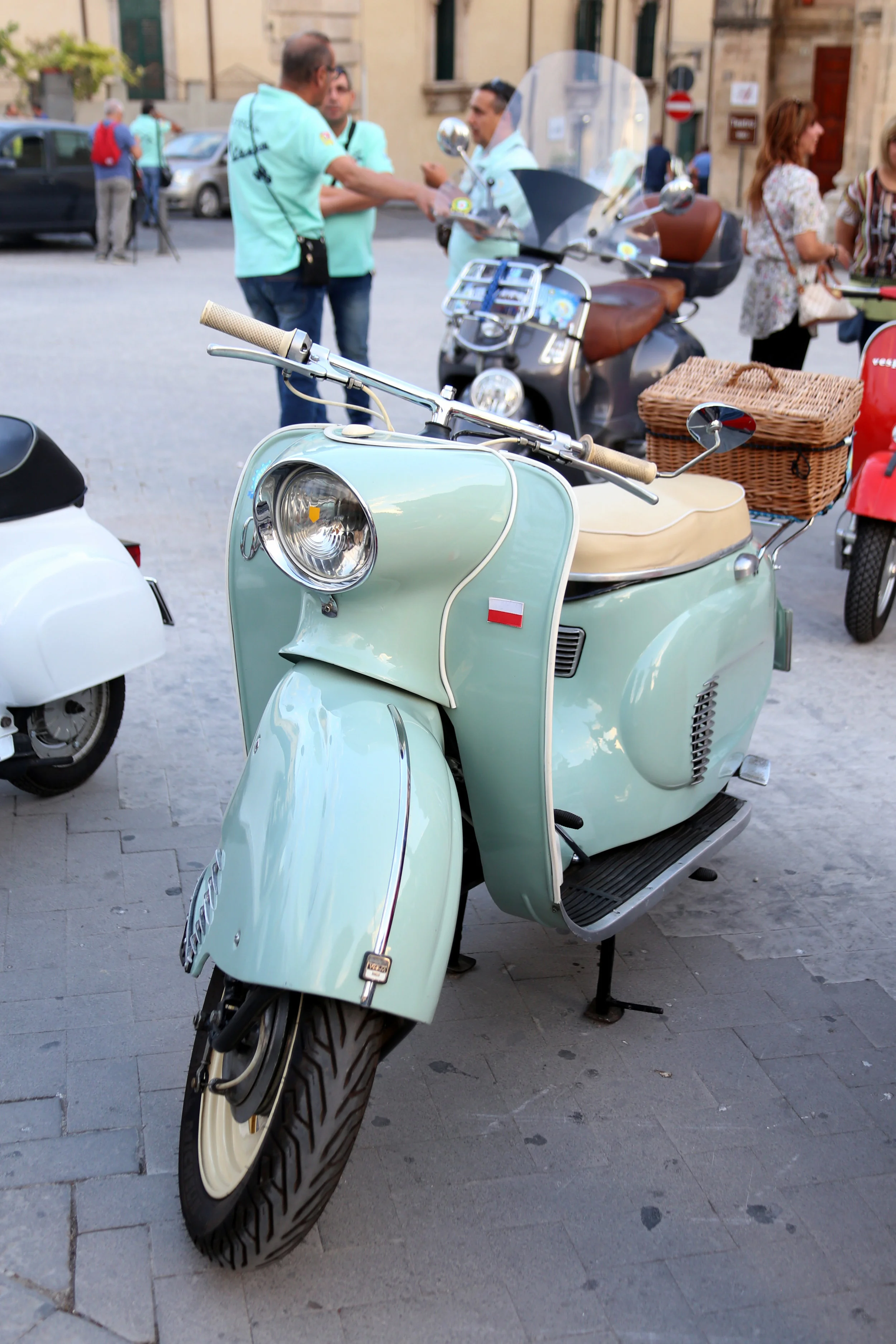 On my walk through the town I stumbled upon the local vespa club. Most of the members wore the same aqua polo shirt and were scattered in groups by two rows of neatly parked classic vespas.
